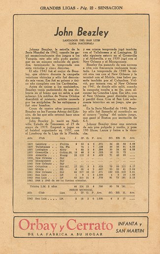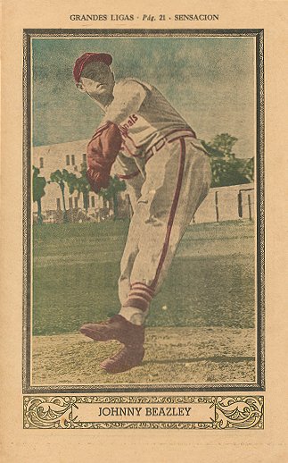 Rare 1946-47 Sensacion premium of Major Leaguer Johnny Beazley. Measures 7.75" by 11.75".
