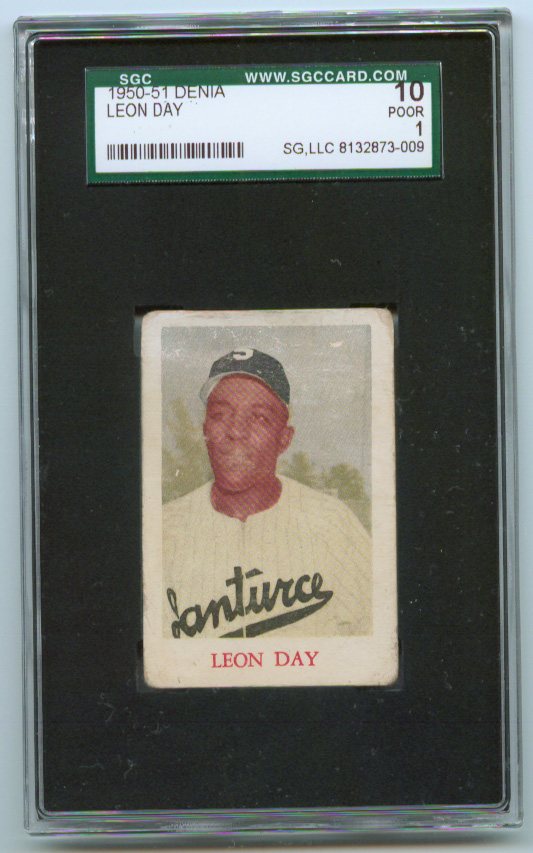 One of 2 cards this HOFer has. Both were issued in Puerto Rico. This one is from the 1950-51 Denia issue and is blank-backed with a color image of Day in his Santurce uniform on the front.