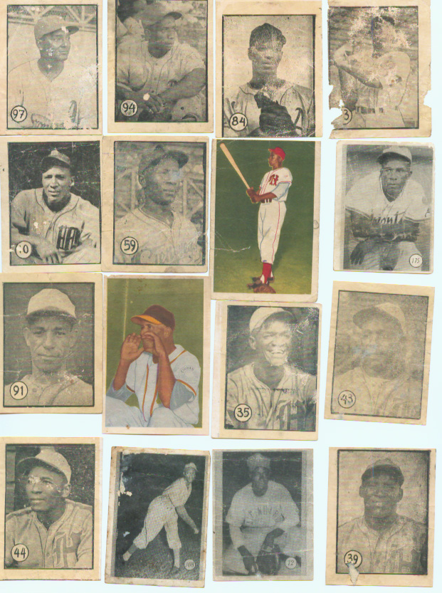 The card of Don Newcombe is particularly important as this card (picturing Newcombe in his Newark Eagles uniform) is, to my knowledge, the only baseball card ever produced featuring a player in his Negro League uniform. Condition is across the board from Poor to EX/NM with 2 or 3 cards that would more accurately be graded as "Terrible." Players include: