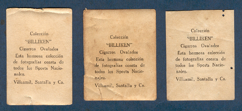 Although these Billikens grade only P-F (Rojo is trimmed on the top edge), they do feature nice photographic images of forgotten baseball heroes and are so rare that you may not see another example of these players for a long time. Julio Rojo was the regular catcher for the Atlantic City Bacharach Giants, Baltimore Black Sox and New York Lincoln Giants throughout the 1920’s. He also had a long career in his homeland and is a member of the Cuban Baseball Hall of Fame. Oscar Levis had a solid Negro League career in the states and was a borderline star in Cuba where the big Panamanian southpaw led the league in wins on two separate occasions. Rafael “Busta” Quintana was a utility infielder in Cuba and also spent a couple years in the Negro Leagues. Billikens in any condition are worthy of attention and admiration.
