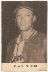 1948-49 Toleteros card of Juan Guilbe. A HOFer in his home country, Guilbe played for the New York Cubans and Indianapolis Clowns in the Negro Leagues. Leon Day called him one of the greatest pitchers he'd ever seen.
