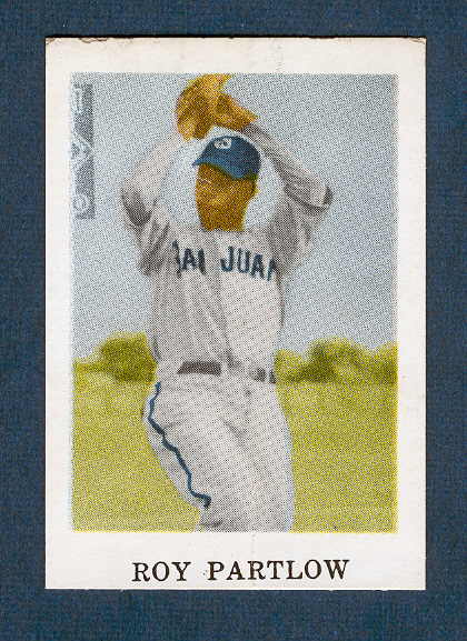 One of the great things about the Cuban/Puerto Rican baseball cards is that often times they offer the only glimpse on cardboard of prominent Negro Leaguers. This is the case here, as this is the only card of Homestead Gray southpaw Roy Partlow. Partlow was a mound mainstay during the Homestead dynasty, pitching in several World Series and an all star game. He was also a decent hitter (he win the batting title in 1940-41) and played the outfield on occasion, and was a star in Puerto Rico throughout the 1940’s.