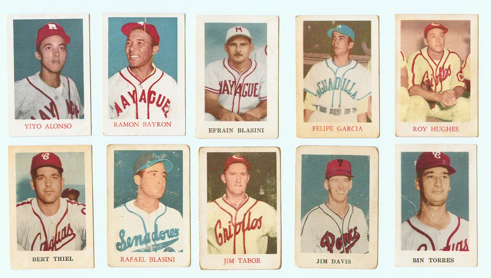 1950-51 Denia card lot of 10. Oddly, these were produced by a powdered milk company in Puerto Rico. The clear color images make them one of the most attractive issues of the era produced in any era. Includes:
