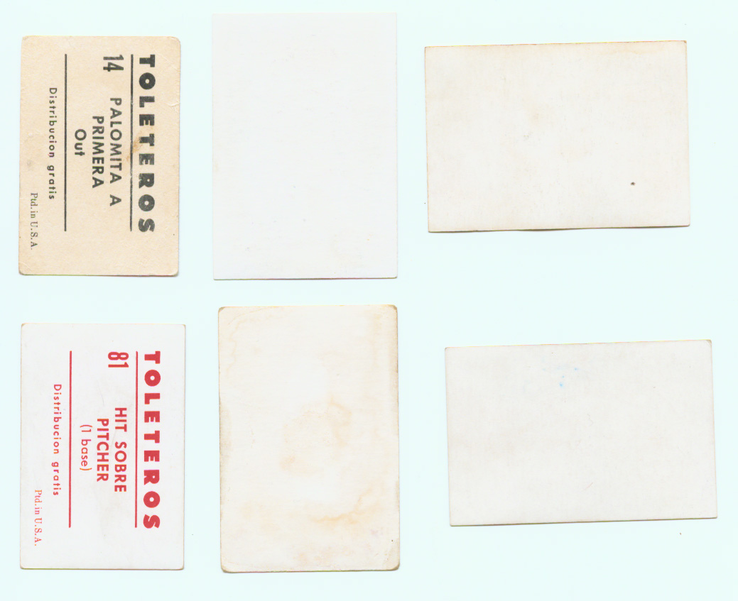 1. 1948-49 Toleteros - Gely Goyco 2. 1949-50 Toleteros - Ramon Lasa 3. 1950-51 Toleteros - Alberto Alicea 4. 1950-51 Toleteros In Action - #135 5. 1950-51 Denia - Miguel Payano 6. 1950-51 Denia In Action - #60