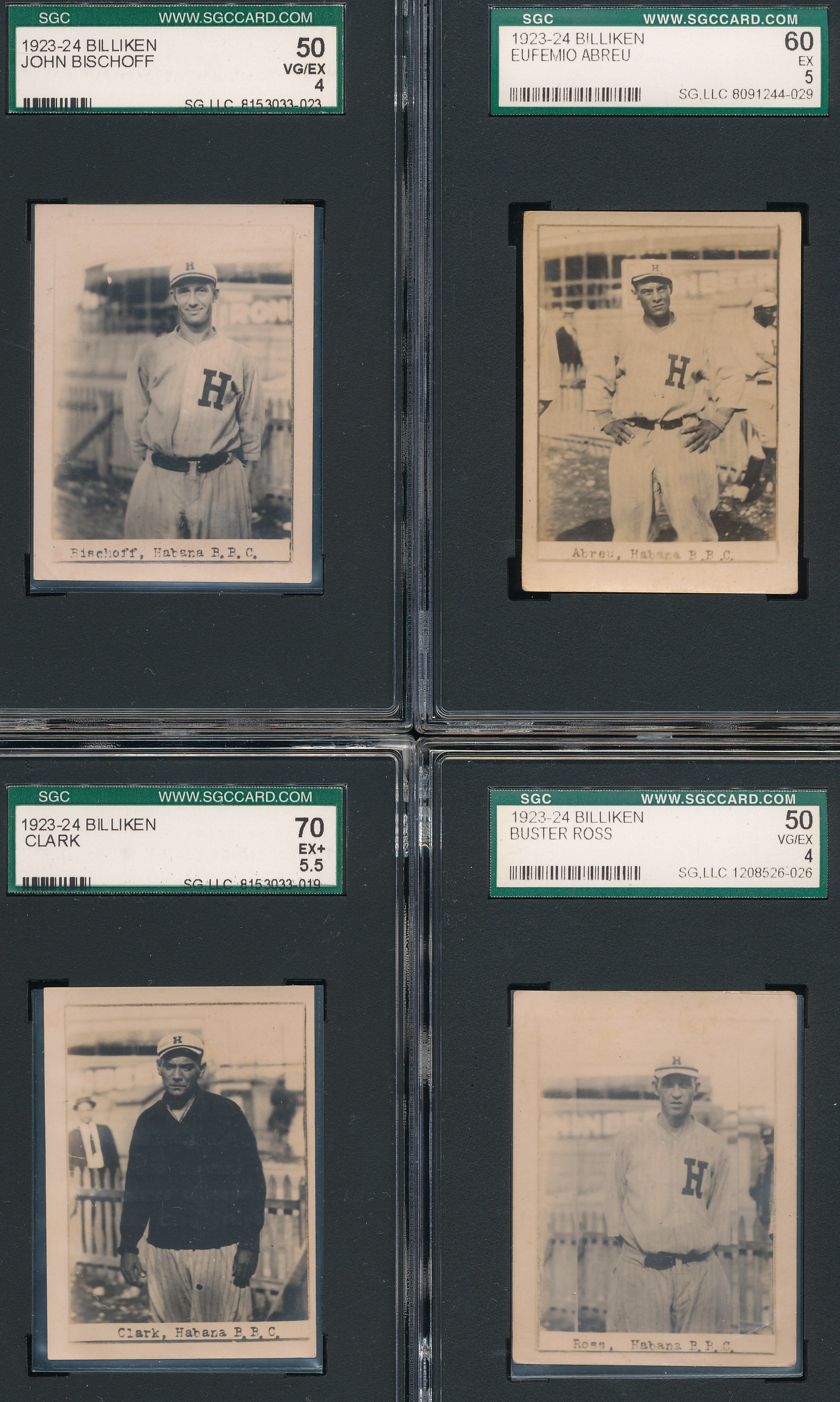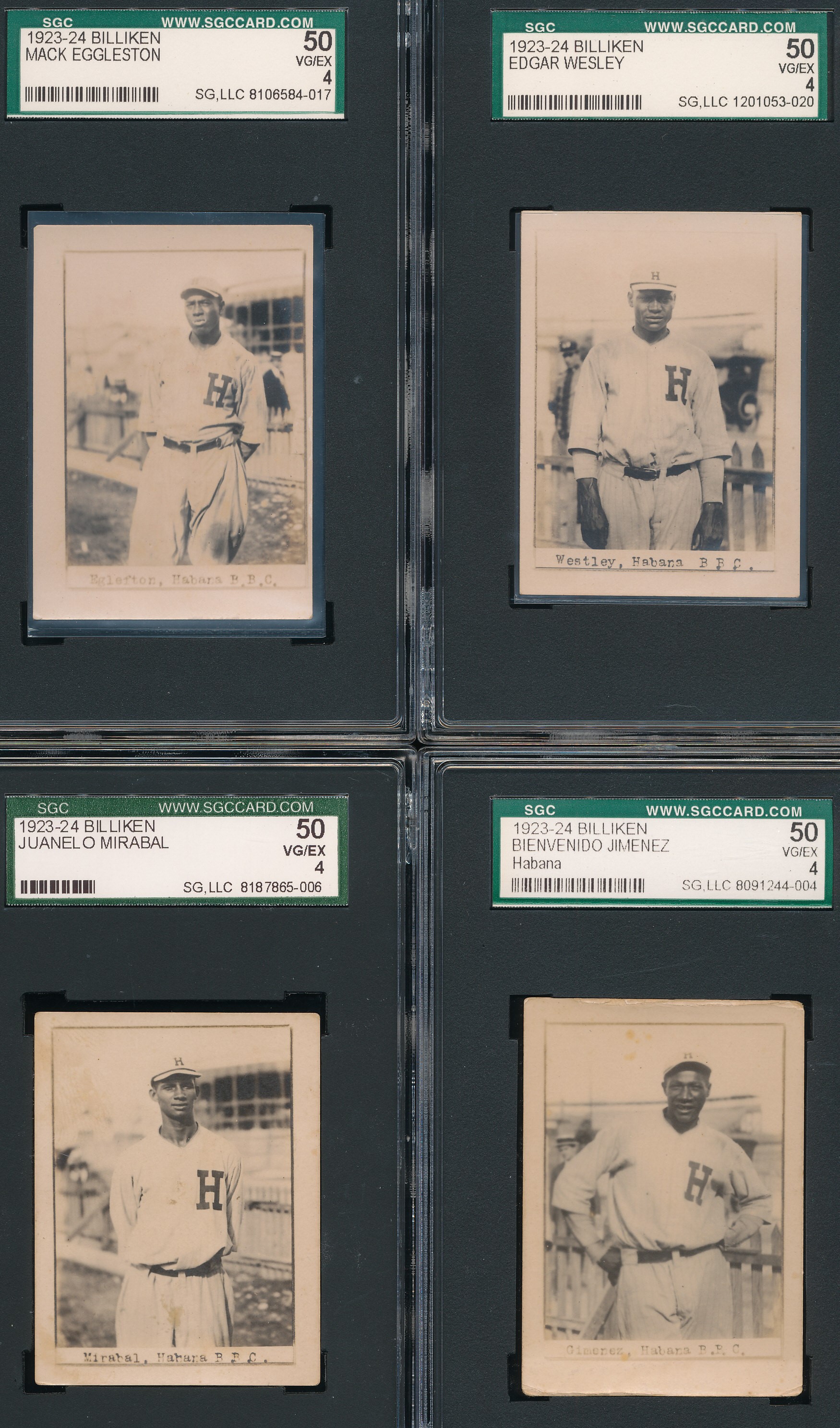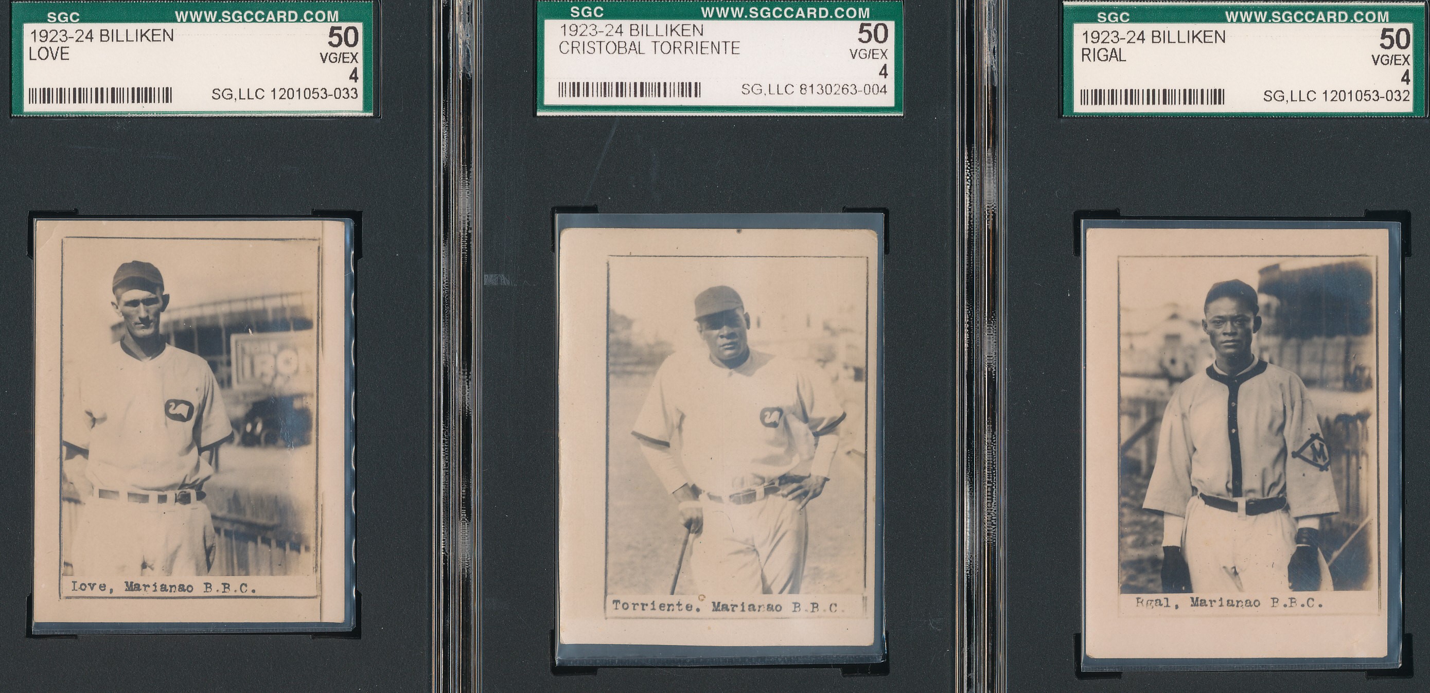 The 1923-24 Billiken set is widely considered one of, if not THE most desirable of all Cuban baseball card issues. They were issued in packs of "Billiken" brand oval-made cigars. Unlike many other Cuban issues of the 1920s, the images are all unique and cannot be found elsewhere. Printed on photographic stock, each card shows a player in uniform from around the knees up with La Boulanger Park in Santa Clara visible in the background. The cards can vary in size, with most being around 1 15/16" by around 1 5/8". The photographer is unknown, but with what was captured with these images, they must have been some kind of Cuban Charles Conlon.