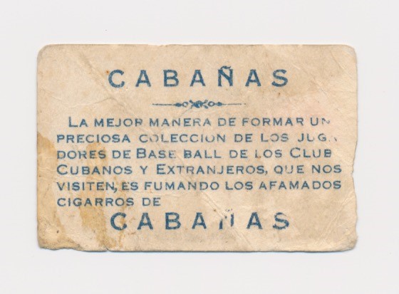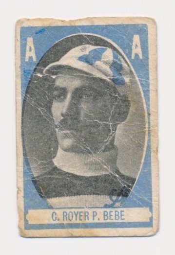 1909 Cabañas card of Carlos "Bebe" Royer, one of the greatest pitchers in Cuban baseball history. Royer was one of the first players elected to the Cuban Baseball Hall of Fame. He was a beloved star for the Habana team for most of his career which began in 1890, but is seen here with the Almendares team who he played with for a few seasons at the very end of his playing days.