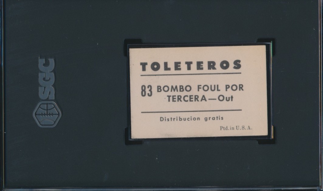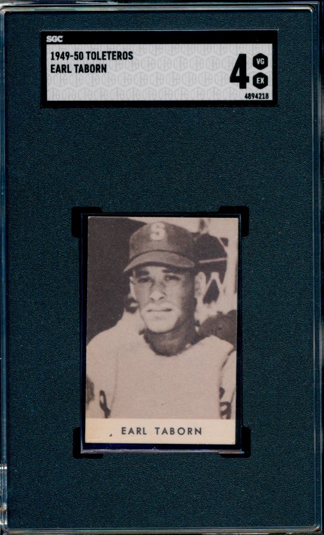 1948-49 Toleteros card of Negro Leaguer Earl Taborn. Graded a 4 by SGC. By far the nicest of the two examples SGC has graded. If anyone can figure out why this is only a 4, you've got better eyes than me. Taborn was the catcher for the Kansas City Monarchs in the late 1940s. He also had great success playing in Puerto Rico and Mexico.