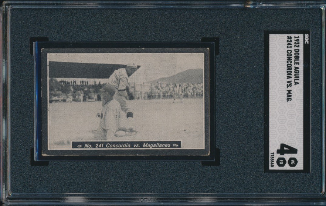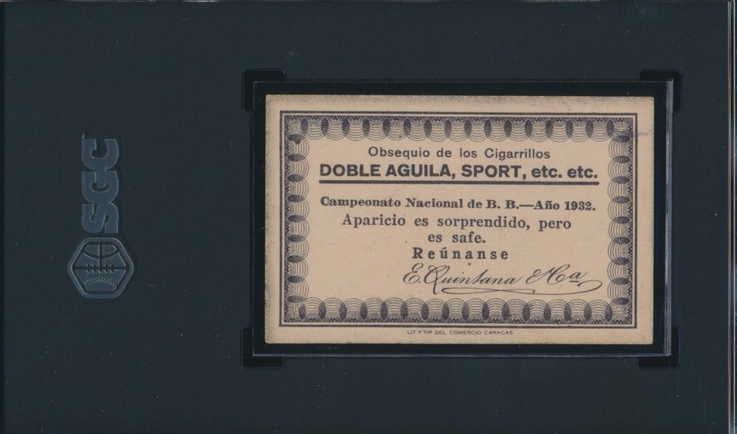 1932 Doble Aguila #241 featuring Luis Aparacio, Sr., father of HOFer Luis Aparicio. Graded a 4 by SGC. Of the 45 examples SGC has graded from this set, only 3 cards have graded higher. Two graded 4.5 and one graded 5.