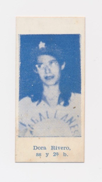1948-49 Empresa Comercial Sport card of female baseball player Dora Rivero. These are not softball players, they are BASEBALL players!