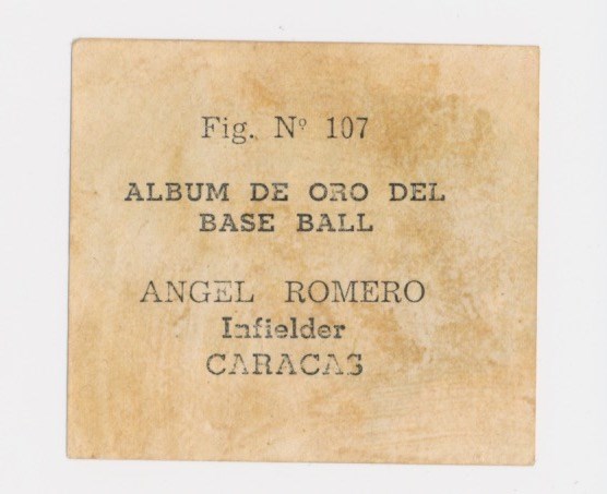 1953-54 Album de Oro #107 of Angel Romero. One of the tougher Venezuelan sets with each card have only 3 or fewer known examples.