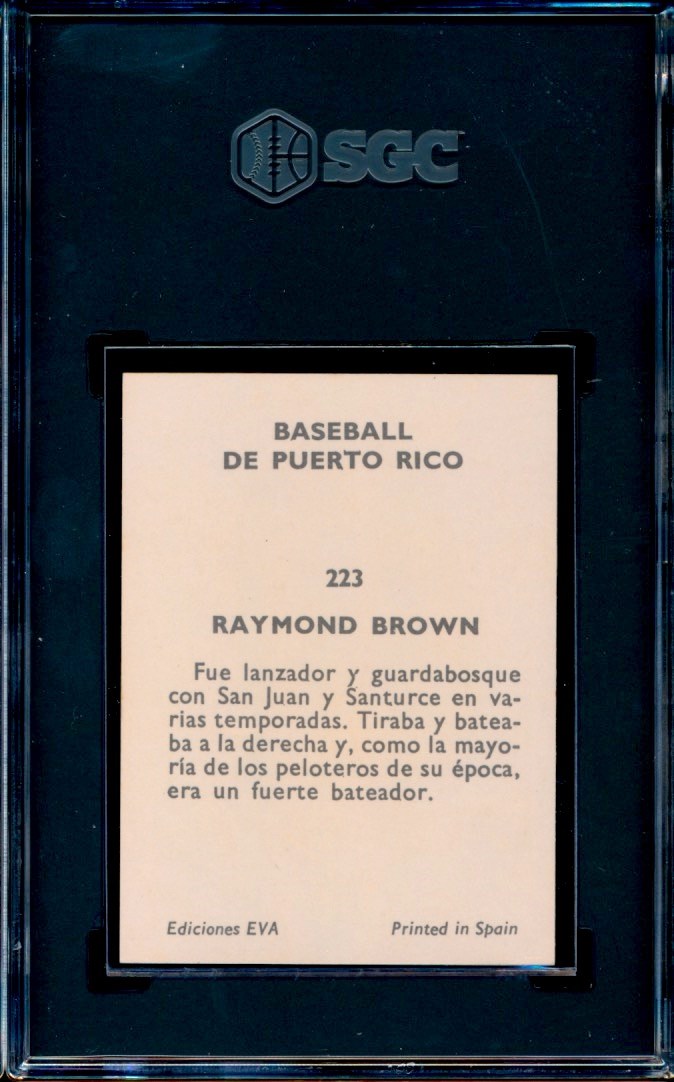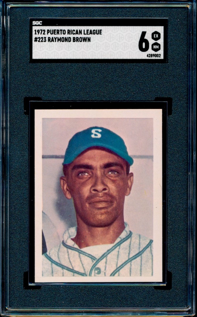 1972 Puerto Rican League card #223 of HOF Negro Leaguer, Raymond Brown. Graded a 6 by SGC. This is the highest grade example of this card that SGC has graded.