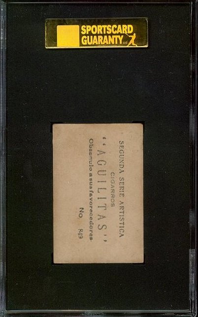 Méndez led the Cuban league 5 times in pitching, including 4 years in a row, and was also a member of the greatest team in Cuban baseball history, the 1923-24 Santa Clara Leopardos. This card pictures him as a member of that team. This is a high-grade example and deemed a 60 (EX) by SGC.