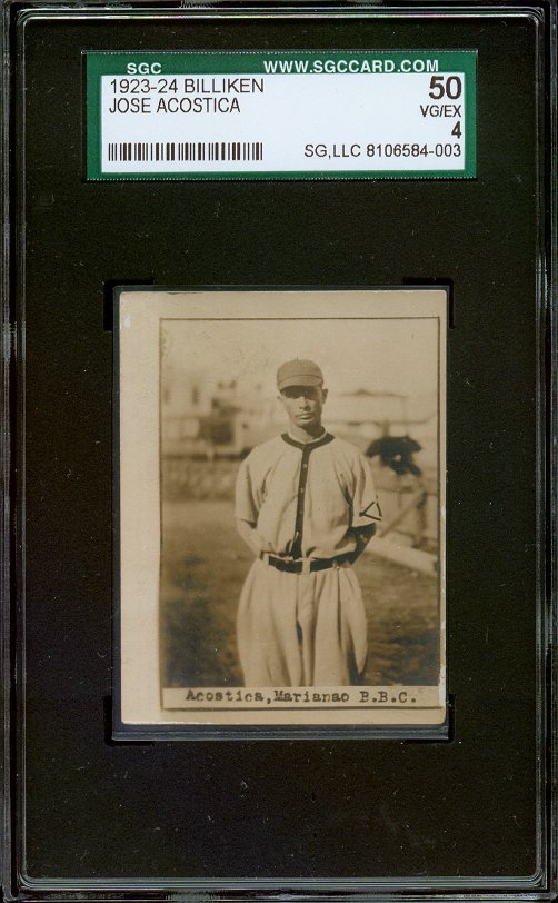 The 1923-24 Billiken set is considered by many to be the greatest issue ever produced in Cuba with breathtaking images of some of the all-time greats. This card shows Acostica as a member of the Marianao team.